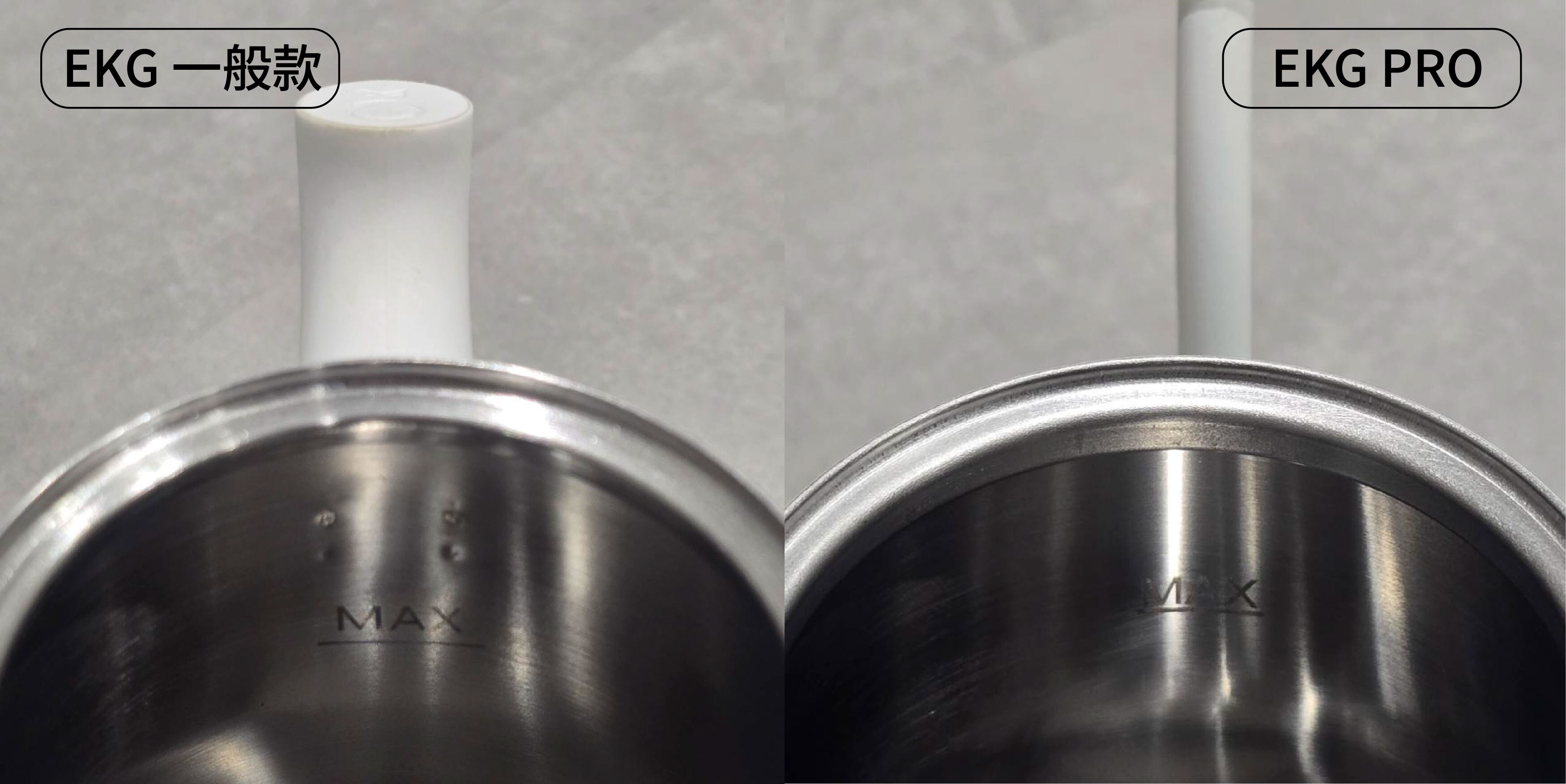 EKG 一般款,MAX 滿水位線設計在把手位置。