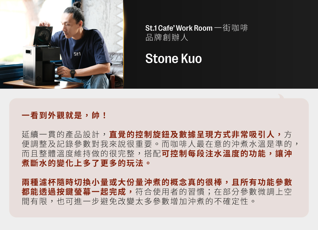 👉 過去自動手沖咖啡機總是無法從小份到大份量一機支援,FELLOW 團隊費盡心思打造出不管是小份大杯都能完整呈現咖啡最棒的風味!