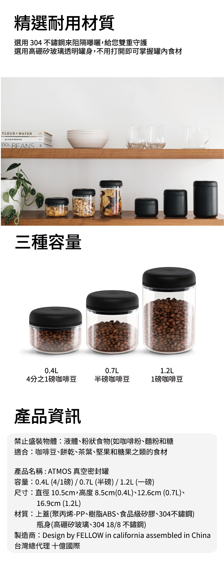 .三種容量 0.4L(約170g)0.7L(約285g)1.2L(約455g)