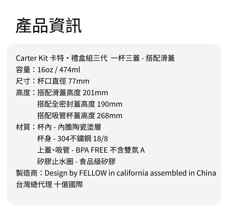 .瘦款 Carter 全密封 16oz x1