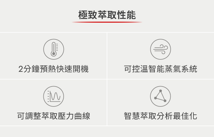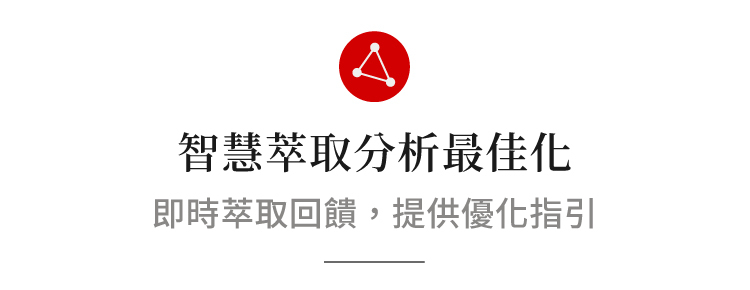 透過內建精密感應器及智慧演算法紀錄每一次的流速與壓力狀態,將抽象的萃取過程轉換出實際曲線結果,並提供即時分析及調整建議,給予實質調整方向及建議。