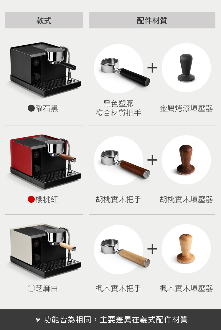 ★ 曜石黑 - 標配黑色塑膠複合把手及金屬填壓器